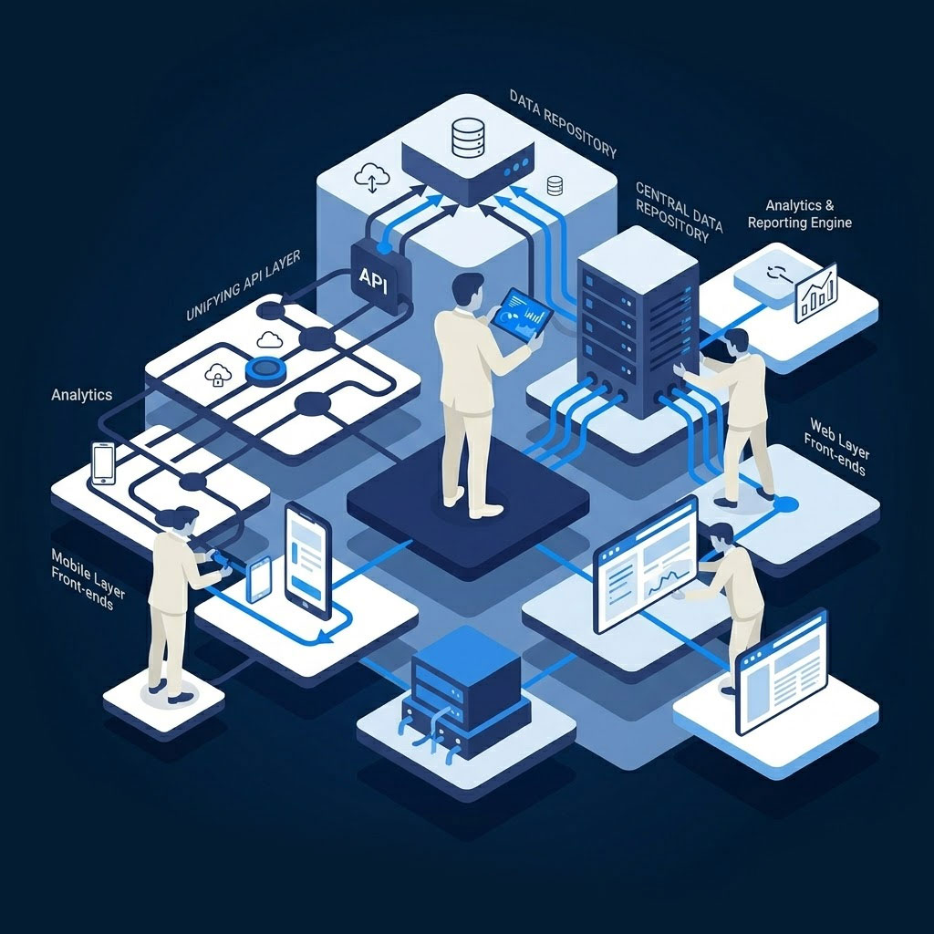 Construimos aplicaciones que reflejan cómo opera tu negocio, no al revés. Sistemas de gestión, integraciones multi-componente y plataformas escalables para empresas que han superado las soluciones estándar.