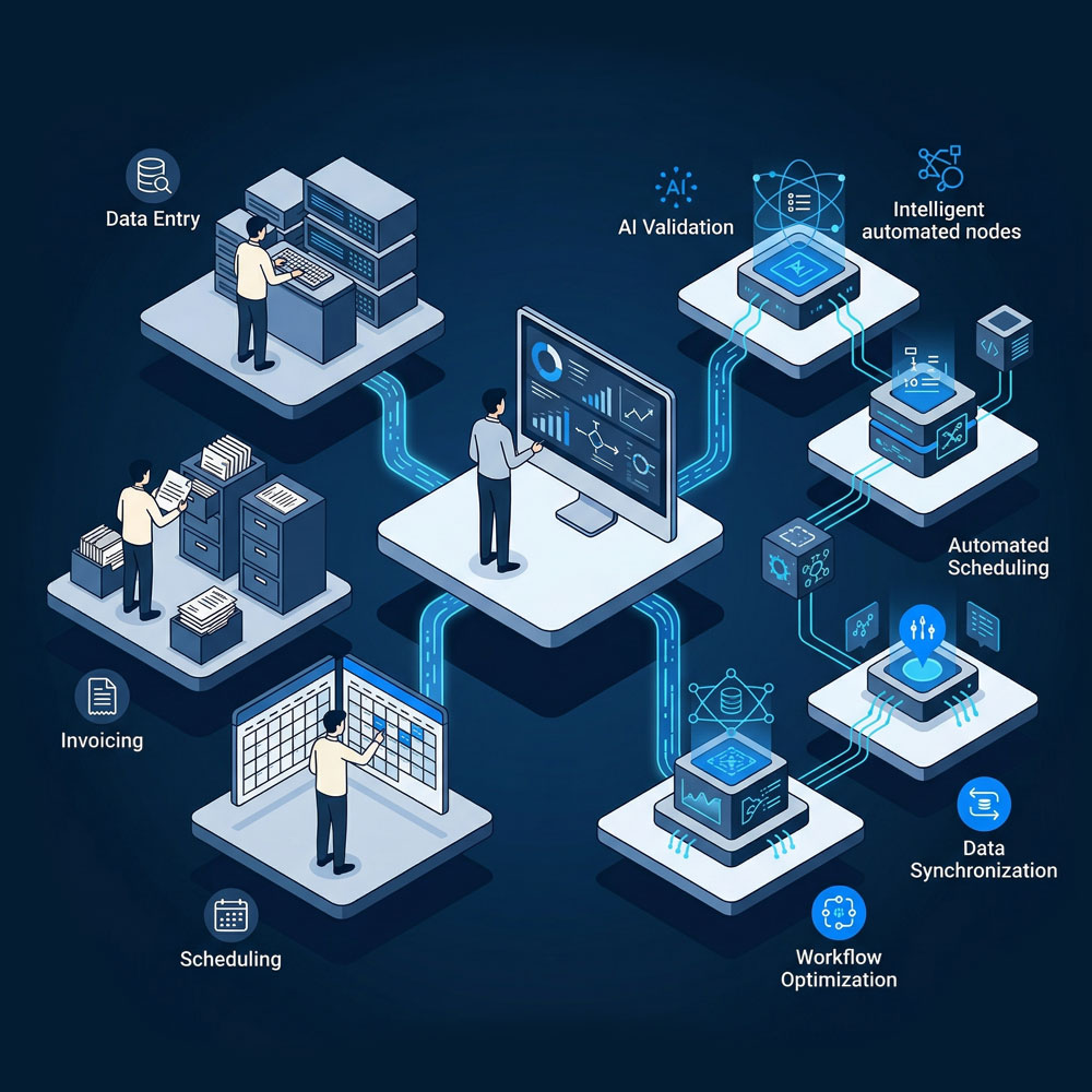 La mayoría de las empresas llegan con procesos que crecieron sin diseño, llenos de pasos redundantes, excepciones manuales y workarounds acumulados. Antes de construir cualquier solución, los revisamos contigo. Lo que no necesita existir, lo eliminamos. Lo que sí necesita automatizarse, lo construimos para durar.